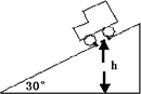 如图所示, 一质量为m的汽车在倾角为30°的斜面上A点匀加速下滑, 其运动的加速度为g/4, 如果汽车在斜面上下降的最大高度为h, 则在下降过程中汽车