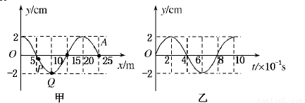 一列简谐横波,某时刻的波形图象如图甲所示,从该时刻开始计时,波上A质点的振动图象如图乙所示,则![]()