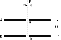 如图所示,中央有正对小孔的水平放置的平行板电容器与电源连接,电源电压为U.将一带电小球从两小孔的正上方P点处由静止释放,小球恰好能够达到B板的小孔b点处,然后又按原路返回.那么,为了使小球能从B板的小孔b处出射,下列可行的办法是