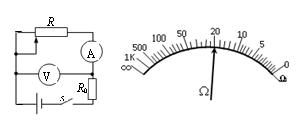 ⑴某同学设计的电路图如图所示.当他闭合开关时发现电压表有示数,电流表没有示数.反复检查后发现电路连接完好,估计是某一元件断路,因此他拿来多用电表检查故障.他的操作如下:![]()