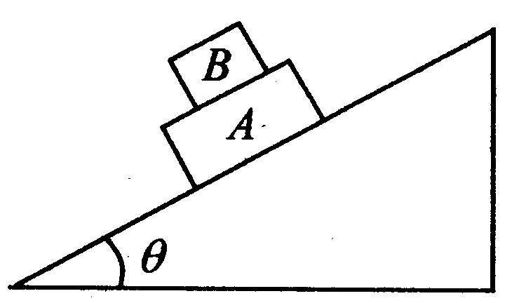 如图所示,质量为m的物体B叠放在物体A上,A的质量为M,置于固定的、倾角为