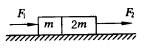 如图所示,光滑水平面上质量分别为m和2m的两物块靠放在一起,分别受到水平力F1和F2的作用,其中F2是恒力,大小为2N;F1是变力,F1=(9-2t)N.则在t=0时,两物块的相互作用力为_______N.当t=_______s时,两物块将开始分离.