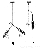 的共同作用下,将橡皮条的结点拉长到O点;图乙表示准备用一个拉力F拉橡皮条。下列说法正确的是: