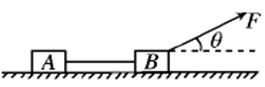 如图所示,质量为m=10 kg的两个相同的物块A、B(它们之间用轻绳相连)放在水平地面上,在方向与水平面成θ=37°角斜向上、大小为100 N的拉力F作用下,以大小为v=4.0 m/s的速度向右做匀速直线运动.(取g=10 m/s2,sin37°=0.6,cos37°=0.8)求: