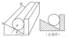 (8分)如图所示,质量为m=4kg的圆柱体卡在V形凹槽内,凹槽右壁竖直,左边为倾角θ=37°的斜面,圆柱体与槽之间的动摩擦因数均为μ=0.2,槽放在水平桌面上(AB与桌面平行),今用平行AB的力推F着圆柱体匀速前进,求: