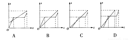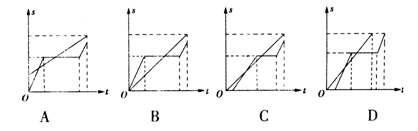 小李讲了一个龟兔赛跑的故事:龟、兔从同一地点出发,发令枪响后龟缓慢地向终点跑去,直至到达终点.兔自恃跑得快,让龟跑了一段时间后才开始跑,当它超过龟后便在路旁睡起觉来,醒来一看,龟已接近终点了,于是便奋力追去,但最终还是让龟先到达了终点,据此,我们可以将龟兔赛跑的运动过程用位移--时间图象来表示,正确的是( )![]()