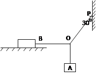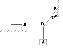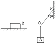 如图所示,物体A、B都处于静止状态,其质量分别为mA=5kg,mB=10kg,OB呈水平,OP与竖直方向成37 º角。求物体B受到的摩擦力为多少? ![]()