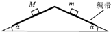 如图所示,倾角为α的等腰三角形斜面固定在水平面上,一足够长的轻质绸带跨过斜面的顶端铺放在斜面的两侧,绸带与斜面间无摩擦.现将质量分别为M、m(M>m)的小物块同时轻放在斜面两侧的绸带上.两物块与绸带间的动摩擦因数相等,且最大静摩擦力与滑动摩擦力大小相等.在α角取不同值的情况下,下列说法正确的有( )