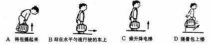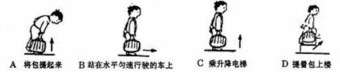 如图所示的四幅图是小明提包回家的情景,小明提包的力不做功的是( )![]()