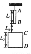 (1)从悬线剪断至直杆B端到达圆筒上端所用的时间;