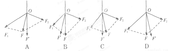 (2)若F1和F2表示两个互成角度的力,F表示由平行四边形定则作出的F1与F2的合力;F′表示用一个弹簧秤拉橡皮条时的力,则图中符合实验事实的是 .