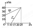 | C.乙物体运动中的瞬时速度要大些,但全过程(0-25s内)的平均速度要小些 |