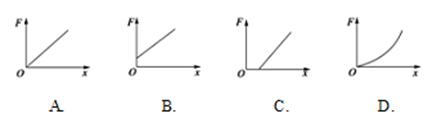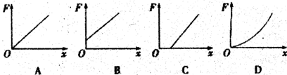 某同学做“探究弹力和弹簧伸长量的关系”实验,他先把弹簧平放在桌面上使其自然伸长,用直尺测出弹簧的原长L0,再把弹簧竖直悬挂起来,挂上砝码后测出弹簧伸长后的长度L,把L-L0作为弹簧的伸长量x,这样操作,由于弹簧自身重力的影响,最后画出的图线可能是下图的哪一个( )![]()