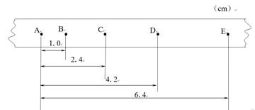 (2).某同学在测定匀变速直线运动的加速度时,得到了几条较为理想的纸带。他已在每条纸带上按每5个点取好计数点,即两计数点之间的时间间隔为0.1s,依打点先后编为0、1、2、3、4、5。由于不小心,几条纸带都被撕断了,如图所示,请根据给出的A、B、C、D四段纸带回答①B、C、D三段中选出从纸带A上撕下的那段应该是____。②打A纸带时,物体的加速度大小是_____m/s2。(取三位有效数字)