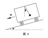 如图4所示,小车在倾角为α的斜面上匀加速运动,车厢顶用细绳悬挂一小球,发现悬绳与竖直方向形成一个稳定的夹角β。试求小车的加速度。