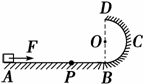 如图所示,水平地面AB=10.0 m,BCD是半径为R=0.9 m的光滑半圆轨道,O是圆心,DOB在同一竖直线上.一个质量m=1.0 kg的物体静止在A点.现用F=10 N的水平恒力作用在物体上,使物体从静止开始做匀加速直线运动.物体与水平地面间的动摩擦因数μ=0.5.当物体运动到B点时撤去F,之后物体沿BCD轨道运动,离开最高点D后落到地上的P点(图中未画出).g取10 m/s2,求: (1)物体运动到B点时的速度大小.