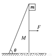 (12分)如图所示,一质量为M=5 kg的斜面体放在水平地面上,斜面体与地面的动摩擦因数为μ1=0.5,斜面高度为h=0.45 m,斜面体与小物块的动摩擦因数为μ2=0.8,小物块的质量为m=1kg,起初小物块在斜面的竖直面上的最高点。现在从静止开始在M上作用一水平恒力F,并且同时释放m,取g=10 m/s2,设小物块与斜面间最大静摩擦力等于它们之间的滑动摩擦力,小物块可视为质点。问:![]()