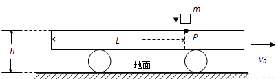 如图所示,水平地面上的平板车在外力控制下始终做匀速直线运动,速度大小v0=4m/s,方向水平向右.某时刻将一质量为m=1kg的小滑块(可视为质点)轻放到车面上的P点,P点与平板车左端相距L=3m,车面距地面的高度h=0.8m,滑块与车面间的动摩擦因数μ=0.2,取g=10m/s2,求: