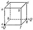 如图,a、b、c、d、e、f、g、h分别为立方体的八个顶点,两个带正电的点电荷分 别固定在e、g,电荷量均为Q。不计重力。一个带负电的检验电荷