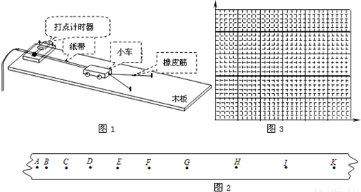 某学习小组做探究“合力的功和物体速度变化关系” 的实验,如图,图中小车是在一条橡皮筋作用下弹出,沿木板滑行,这时,橡皮筋对小车做的功记为W,当用2条、3条……,完全相同的橡皮筋并在一起进行第2次、第3次……实验时,使每次实验中橡皮筋伸长的长度都保持一致。每次实验中小车获得的速度由打点计时器所打的纸带测出。![]()