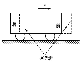 一列火车以速度v相对地面运动.如果地面上的人测得,某光源发出的闪光同时到达车厢的前壁和后壁(如图所示),那么按照火车上人的测量,闪光先到达前壁还是后壁?火车上的人怎样解释自己的测量结果?