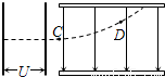 (13分)一电子通过电压为4500V的加速电场加速后获得速度,沿垂直电场线方向进入场强为1.5×105V/m的匀强电场中。电子从进入电场的一点c点到达电场中另一点d点时,电子的速度方向刚好与场强方向成120o的夹角,如图所示。则: