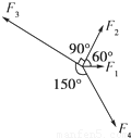 N、F4=4N,它们之间的夹角依次为60°、90°和150°,F1的方向为正东方向.试用正交分解法求它们合力的大小和方向.