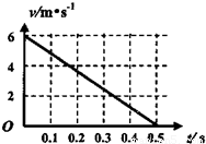 一质量等于0.5kg的滑块以6m/s的初速度冲上一倾角为30°足够长的斜面,某同学利用DIS实验系统测出了滑块冲上斜面过程中多个时刻的瞬时速度,如图所示为通过计算机绘制出的滑块上滑过程的v-t图。求:(g取10m/s)