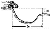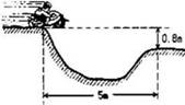 在水平路上骑摩托车的人,碰到一个壕沟,沟两岸高低差0.8m水平间距5m,摩托车要安全越过这个壕沟,速度至少多大?(忽略空气阻