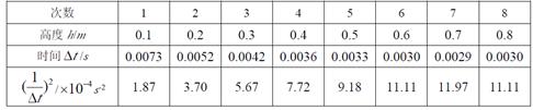 | 时间△t/s | 0.0073 | 0.0052 | 0.0042 | 0.0036 | 0.0033 | 0.0030 | 0.0029 | 0.0030 | ||
