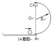 (14分)如图所示,半径为R,内壁光滑的半圆形轨道竖直放置,质量为m的小球以某一速度进入圆形轨道,通过最高点C时,对轨道的压力为3mg,AC在同一竖线上,不计空气阻力,求:![]()
