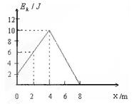 (12分)质量m="1" kg的物体,在水平拉力F的作用下,沿粗糙水平面运动;经过位移4m时,拉力F停止作用,运动到位移是8m时物体停止。运动过程中Ek—x的图线如图所示。(g取10m/s2)![]()
