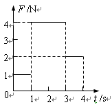 在动摩擦因数为0.2的水平面上放有一质量为1kg的物体,后在水平推力F作用下运动,F-t图象如图所示,则前2秒内推力做的功为__________J,前4s内摩擦力做的功为__________J.(g=10m/s2)![]()