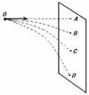 一个小球在O点对准前方的一块竖直放置的挡板,O与A在同一高度,小球的水平初速度分别是