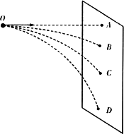 时,打在挡板上的位置分别是B、C、D,且(不计空气阻力)。则