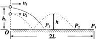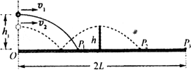 (1)若球在球台边缘O点正上方高度为h1处以速度v1水平发出,落在球台的P1(如图实线所示),求P1点距O点的距离s1;