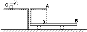 如图所示,在光滑的水平面上停着一辆小车,小车平台的上表面是粗糙的.它靠在光滑的水平桌面旁并与桌面等高.现在有一个质量为m=2kg的物体C以速度v0=10m/s沿水平桌面向右运动,滑过小车平台后从A点离开,恰能落在小车前端的B点.已知小车总质量为M=5kg,O点在A点的正下方,OA=0.8m,OB=1.2m,物体与小车摩擦系数?=0.2,g取10m/s2