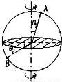 如图所示,假设地球为一球体,地球绕地轴自转时,在其表面上有A,B两物体,θ1和θ2为已知,则A,B两物体的向心加速度之比aA:aB=    .(图中斜线为赤道平面)