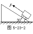 如图5-23-2所示,质量是20kg的小车,在一个与斜面平行的200N的拉力作用下,由静止开始前进了3m,斜面的倾角为300,小车与斜面间的摩擦力忽略不计.求这一过程物体的重力势能增加了多少?物体的动能增加了多少?拉力F做的功是多少?