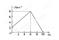 质量为2 kg的物体在水平推力F的作用下沿水平面做直线运动,一段时间后撤去F,其运动的v-t图象如图所示.g取10 m/s2,求:![]()