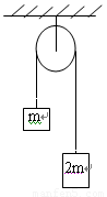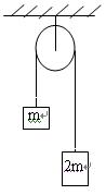 (7分)如图所示两物体质量分别为m、2m。滑轮的质量和摩擦都不计,2m的物体从静止开始下降h后的速度是多大?![]()
