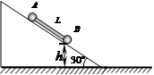 =30o的光滑固定斜面上,放有两个质量分别为1kg和2kg的可视为质点的小球A和B,两球之间用一根长L=0.2m的轻杆相连,小球B距水平面的高度h=0.1m。两球从静止开始下滑到光滑地面上,不计球与地面碰撞时的机械能损失,g取10m/s2。则下列说法中正确的是![]()