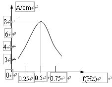 (12分)如图所示为一单摆的共振曲线,求(1)单摆的摆长及共振时单摆的振幅分别为多大?(2)共振时摆球的最大切向加速度和最大速度大小各为多少?(Π2=g=9.8 在θ很小时