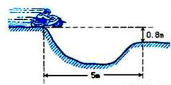 在水平路上骑摩托车的人,遇到一个壕沟,宽5m,高度差为0.8m,如图所示,摩托车的速度至少要有多大,才能越过这个壕沟?(g取10m/s2)![]()