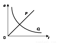 如图所示为质点P、Q做匀速圆周运动的向心加速度随半径变化的图线.表示质点P的图线是双曲线,表示质点Q的图线是过原点的一条直线.由图线可知?( )