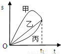 甲、乙、丙三物体同时同地出发做直线运动,它们的运动情况,如图所示,在t1时间内,