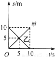 A.两物体的速度大小相等,方向相反 B.经t=5 s,甲、乙两物体相遇