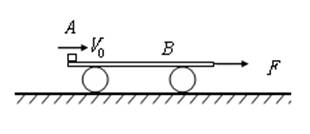 (22分)物体A的质量M=1kg,静止在光滑水平面上的平板车B的质量为m=0.5kg、长L=2m。某时刻A以V0=4m/s向右的初速度滑上木板B的上表面,在A滑上B的同时,给B施加一个水平向右的拉力。忽略物体A的大小,已知A与B之间的动摩擦因数µ=0.2,取重力加速度g=10m/s2。试求: