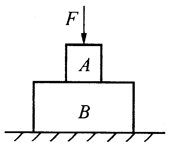 如图所示,水平面上叠放着A、B两个物体,A和B的接触面水平.在物体A上施加一竖直向下的压力F,这时A受到________个力的作用,B受到________个力的作用.