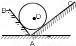 如图所示,AB、AC两光滑斜面相互垂直。AC与水平面成300角。如把球O的重力按照其作用效果分解,则两个分力的大小分别为